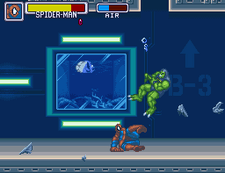 The player plays each level as one of five superheroes - Captain America, Iron Man, Spider-Man, Wolverine, or Hulk - as they battle through various locations around the globe and even outer space. Each character's health bar is separate and carries over between missions - healing can only be done by picking up items in the levels or using healing items picked up during missions. When a character falls, they must be revived individually with the appropriate item. After investigating an area, the player may or may not be rewarded with one of the gem resulting in a restart of the entire game. Only two can be picked up during the first four missions, one is picked up in the following mission upon defeating The Magus, and then two more are randomly received in two of the four following levels. The last gem is only received upon defeating Thanos, thus completing the game.