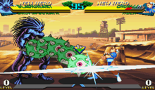 Marvel Super Heroes vs. Street Fighter is the second installment in the Marvel vs. Capcom series of 2D fighting games.[2] It utilizes the same one-on-one tag team format previously employed in X-Men vs. Street Fighter. The player chooses a team of two fighters, each sporting their own life gauge; at the start of the match, the first selected character is controlled by the player, while the second character remains off-screen and acts as support.[3] Using a combination of joystick movements and button presses, the player must execute various moves to deplete the opposing team's life gauges.[3] The first player to completely drain the opponent's health is declared the winner.[3] If the timer reaches zero, the player that possesses the most health wins.[3]
