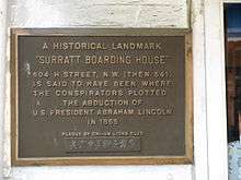 The Mary E. Surratt Boarding House in Washington, D.C. was the site of meetings of conspirators to kidnap and subsequently to assassinate U.S. President Abraham Lincoln.[1] It was operated as a boarding house by Mary Surratt from September 1864 to April 1865.[1]