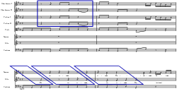 | Part | NBA II | NBA I | Title | Solo | Choir | Brass | Wood | Strings | Key | Time | Tempo | Source[15] | Year |