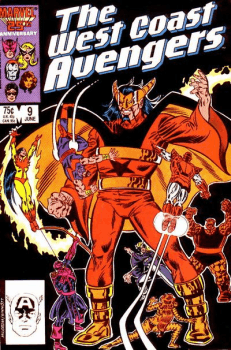 Master Pandemonium on the cover of West Coast Avengers #9 (June 1986). Pencils by Al Milgrom, inks by Joe Sinnott. | |