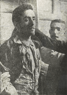 After the attempt, Morral tried to get lost in the crowd (helped by journalist José Nakens), but he was recognized by several people. Hunted down by the authorities, he appeared to be surrendering peacefully. However, he managed to shoot and kill the guard who was taking him to Torrejón de Ardoz prison, and to commit suicide the moment after. For a while, the two bodies were displayed in the town hall.