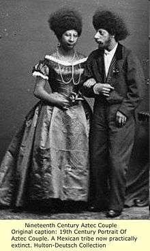 Máximo and Bartola (also known as Maximo Valdez Nunez and Bartola Velasquez respectively) were the stage names of two Salvadoran siblings both suffering from microcephaly and cognitive developmental disability who were exhibited in human zoos in the 19th century. Originally from near Usulután, El Salvador the siblings were given by their mother to a merchant who promised he would take them to Grenada to be educated and exhibited. They then went through several guardians afterwards. They were eventually billed as "Aztec Children" and an elaborate story was constructed of how they were found in the temple of a lost Mesoamerican city. They toured the US and Europe, appearing before various regents and dignitaries.[1][2][3][4][5]