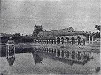 Mayiladuthurai is of great antiquity, its oldest extant temples dating to the time of the Medieval Cholas. The region, itself, however, is known to have been inhabited since the 3rd millennium BC. Sherds of megalithic black and red ware have been found at Akkur, 14 km (8.7 mi) to the east of Mayiladuthurai.[4] In 2006, artifacts with Indus Valley signs dated between 2000 and 1500 BC were found at the nearby village of Sembiyankandiyur.[5][6] There have been references to Mayiladuthurai in the works of the 7th century Saivite saint Sambandar.[7] The Thanjavur Nayak king Raghunatha Nayak constructed mandapams in Mayiladuthurai.[8] During the 17th and 18th centuries AD, Mayiladuthurai was ruled by the Thanjavur Marathas who invited Brahmins from the Telugu, Kannada and Maratha countries to settle in the region and gave large amounts of land to them.[9] In 1799, Mayiladuthurai, was ceded to the British East India Company, along with the rest of the Thanjavur Maratha kingdom, by the Thanjavur Maratha ruler Serfoji II.[10] Mayiladuthurai prospered under British rule emerging as an important town in Tanjore district. Carnatic musicians Madurai Mani Iyer and Gopalakrishna Bharathi and Samuel Vedanayagam Pillai, who wrote the first Tamil novel Prathapa Mudaliar Charithram were born in Mayiladuthurai while Tamil writer Kalki Krishnamurthy, M.S.Udhaya Moorthy studied at the Municipal High School in Mayiladuthurai.[11] When the Tanjore district was trifurcated in 1991, Mayiladuthurai was transferred to the newly formed Nagapattinam district.[12] According to local folklore, Mayiladuthurai was associated with Hindu holy men called "Sithars".[11] To this day, a neighbourhood of Mayiladuthurai is called Sitharkadu.[11] mayuram
