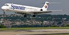 Announced on April 16, 1979, the MD-82 (DC-9-82) was a new MD-80 variant with similar dimensions to those of the MD-81 but equipped with more powerful engines. The MD-82 was intended for operation from 'hot and high' airports but also offered greater payload/range when in use at 'standard' airfields.[21] American Airlines is the world's largest operator of the MD-82, with at one point over 300 MD-82s in the fleet.