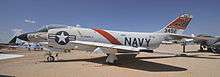 The McDonnell F3H Demon was a subsonic swept-wing United States Navy carrier-based jet fighter aircraft. The successor to the F2H Banshee, the Demon was redesigned with the J71 engine after severe problems with the Westinghouse J40 engine that was part of the original design but ultimately abandoned.[1] Though it lacked sufficient power for supersonic performance, it complemented daylight dogfighters such as the Vought F8U Crusader and Grumman F11F Tiger as an all-weather, missile-armed interceptor[2] until 1964.