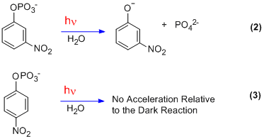 A comparatively bizarre example was uncovered by Egbert Havinga in 1956.[7] The curious result was activation on photolysis by a meta nitro group in contrast to the usual activation by ortho and para groups.
