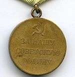 The Medal "For the Defence of Sevastopol" (Russian: Медаль «За оборону Севастополя») was a World War II campaign medal of the Soviet Union established on December 22, 1942 by decree of the Presidium of the Supreme Soviet of the USSR[1] to reward the participants of the defence of the port city of Odessa against the armed forces of Nazi Germany. The medal's statute was amended on July 18, 1980 by decree of the Presidium of the Supreme Soviet of the USSR № 2523-X.[2]