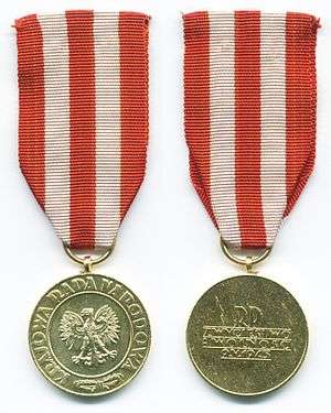 Medal of Victory and Freedom 1945 (Polish: Medal Zwycięstwa i Wolności 1945) was a Polish military decoration awarded to persons who fought during World War II against Nazi Germany.