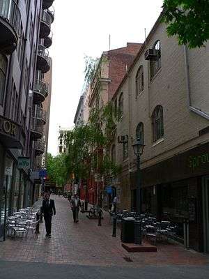 Block Place is a pedestrian only laneway that is trendy and popular with both Melbourne locals and tourists[6][7] for its intimate alfresco cafes[8] close to the shopping heart of Melbourne it is crowded with cafes and shops in a number of pre-war buildings. Cafe Segovia is one of a popular lunch destination and a popular record store is located in underground basements.
