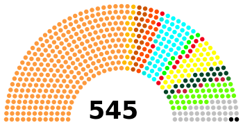 Members of the lower house of the Indian Parliament (Lok Sabha) were elected in the Indian general election, 2014 held in April–May 2014. The total strength of the 16th Lok Sabha is 545, against the approved strength of 552.[13]