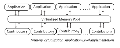 Memory virtualization implementations are distinguished from shared memory systems. Shared memory systems do not permit abstraction of memory resources, thus requiring implementation with a single operating system instance (i.e. not within a clustered application environment).