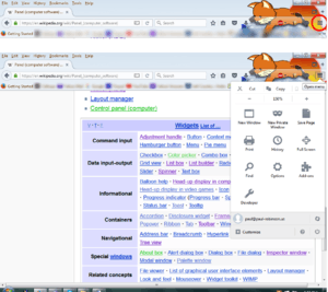 Menu buttons may appear on application programs, such as the menu button on the far right side of the Firefox web browser, and is commonly used for menu or navigational controls on websites.