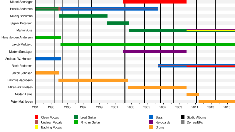 - Henrik "Kral" Andersen - bass (1994-2006), unclean vocals (1991-2006), lead guitar (1991-1993)