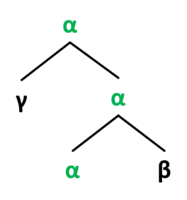 Merge is usually assumed to merge just two constituents at a time, a limitation that results in tree structures in which all branching is binary. While the strictly binary branching structures have been argued for in detail,[4] one can also point to a number of empirical considerations that cast doubt on these strictly binary branching structures, e.g. the results of standard constituency tests.[5] For this reason, most grammar theories outside of Government and Binding Theory and the Minimalist Program allow for n-ary branching.