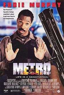 Metro is a 1997 American action comedy thriller film which was directed by Thomas Carter, produced by Roger Birnbaum, and starring Eddie Murphy as Scott Roper, a hostage negotiator and inspector for the San Francisco Police Department who immediately seeks revenge against a psychotic jewel thief, Michael Korda (Michael Wincott), who murdered Roper's best friend, Lt. Sam Baffert (Art Evans). Released on January 17, 1997 in the United States, Metro grossed $32,000,301 in the domestic market, which failed to bring back its $55,000,000 budget.