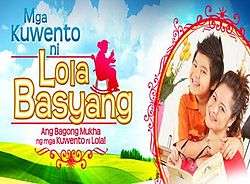 Mga Kuwento ni Lola Basyang is a series of short stories written by "Lola Basyang", pen name of Severino Reyes, founder and editor of the Tagalog magazine Liwayway. The original magazine stories have been adapted several times for comics, television, film, and published in book form. GMA Network bought the rights for the TV serialization of Mga Kuwento ni Lola Basyang.[4]