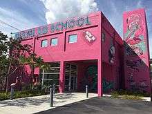 Front of the main building of Miami Ad School in Miami, FL featuring work from international street artists. | |