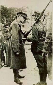 Despite that, Collins managed to produce a Finance Ministry that was able to organise a large bond issue in the form of a "National Loan" to fund the new Irish Republic.[26] According to Batt O'Connor, the Dáil Loan raised almost £400,000, of which £25,000 was in gold. The loan, which was declared illegal by the British, was lodged in the individual bank accounts of the trustees. The gold was kept under the floor of O'Connor's house until 1922.[27] The Russian Republic, in the midst of its own civil war, ordered Ludwig Martens the head of the Soviet Bureau in New York City to acquire a "national loan" from the Irish Republic through Harry Boland, offering some jewels as collateral. The jewels remained in a Dublin safe, forgotten by all sides, until the 1930s, when they were found by chance.