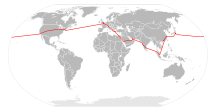 The journey around the world lasted from 25 September to 12 December 1988. Palin travelled through the following countries by foot, train, ship, balloon, and husky dog, amongst other methods of transport (except for aircraft): United Kingdom, France, Switzerland, Liechtenstein, Austria, Italy, Greece, Egypt, Saudi Arabia, Qatar, United Arab Emirates, India, Singapore, Hong Kong, China, Japan, and the United States.
