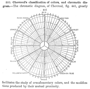 Chevreul's 1855 "chromatic diagram" based on the RYB color model, showing complementary colors and other relationships