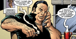 Mickey and the Punisher's identities as saboteurs are later discovered by Julius, who orders their execution, though the two are saved by Shotgun.[7][8] The Punisher allows Mickey to live, on the condition that he become an informant for him, after Mickey helps him and Shotgun massacre the Carbones and the European syndicate that the Carbones had planned on uniting with on La Isla de Tiburones Durmientes.[9]