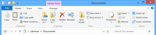 Windows Explorer, which has been renamed File Explorer, now includes a ribbon in place of the command bar. File operation dialog boxes have been updated to provide more detailed statistics, the ability to pause file transfers, and improvements in the ability to manage conflicts when copying files.[65] A new "File History" function allows incremental revisions of files to be backed up to and restored from a secondary storage device,[66] while Storage Spaces allows users to combine different sized hard disks into virtual drives and specify mirroring, parity, or no redundancy on a folder-by-folder basis.[67]