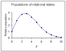 - ↑ This value of J corresponds to the maximum of the population considered as a continuous function of J. However, since only integer values of J are allowed, the maximum line intensity is observed for a neighboring integer J.