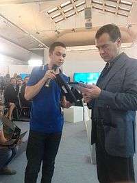 - ↑ Dmitry Kochetkov. (November 9, 2011). "Dmitry Medved'yev discussed, with Russian bloggers, the issues most urgent to millions of people" (in Russian). 1tv.ru. Retrieved September 25, 2013.