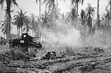 In late 1944, the Australian Government committed twelve Australian Army brigades to replace six US Army divisions which were conducting defensive roles in Bougainville, New Britain and the Aitape-Wewak area in New Guinea. While the US units had largely conducted a static defence of their positions, their Australian replacements mounted offensive operations designed to destroy the remaining Japanese forces in these areas.[153] The value of these campaigns was controversial at the time and remains so to this day. The Australian Government authorised these operations for primarily political reasons. It was believed that keeping the Army involved in the war would give Australia greater influence in any post-war peace conferences and that liberating Australian territories would enhance Australia's influence in its region.[154] Critics of these campaigns argue that they were unnecessary and wasteful of the lives of the Australian soldiers involved as the Japanese forces were already isolated and ineffective.[153]