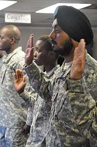 - ↑ "US army accepts first Sikh recruit". The Times of India. Bennett Coleman & Co. 24 October 2009. Retrieved 25 October 2009.