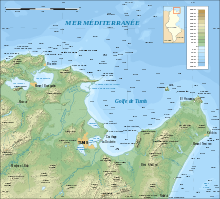 The capital city of Tunis lies at the southern edge of the Gulf of Tunis.