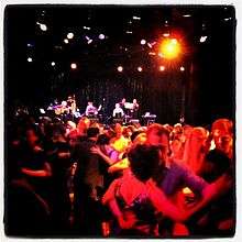 The music played is mainly tango, vals and milonga (as the musical genre). Most milongas are held on a regular basis (usually weekly), and they often begin with dancing classes and sometimes demonstration dances. Usually, three to five songs of a kind are played in a row (this is called tanda) followed by a short musical break (called cortina) to clear the dancefloor and facilitate partner changes. There are a number of informal rules that dictate how dancers should choose their dancing partners and navigate the floor.[1]