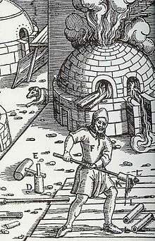 The beginnings of smelting go back to the start of mining in the Upper Harz in the Early Middle Ages. In medieval metallurgy, so-called nomadic smelting (Wanderverhüttung) predominated. The smelting sites were only used for a few weeks and followed the logging of the requisite wood. For the charcoal that was needed for the reduction of the ore, oak and beech wood were especially well-suited. The billets of wood were located near the smelting sites. The low shaft kilns (Schachtöfen) were built of natural rock and earth from the vicinity, and were by no means simple in their construction. They could only be used for a few days of continuous furnace campaign. Fixed buildings were not erected. Over 200 slag sites and smelting sites have been archaeologically recorded from this smelting period. Since the 1980s the mining archaeology team of Lothar Klappauf and Friedrich-Albert Linke have carried out excavations and undertaken a considerable amount of archeological and archaeometallurgical research.[8] The high medieval smelting technology of the 10th to 12th centuries at the Rammelsberg was well established and complex. The wood dweller (Silvani), i.e. those who were doing the smelting in the woodlands, were able to produce copper, lead and silver from the poly-metallic ores of the Rammelsberg.[9]