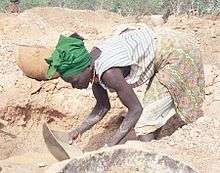 Guinea's bauxite reserve is 7.4 billion metric tons, which is 26.4 percent of global reserves.[2] High-grade iron ore reserves account for more than 4 billion tonnes. Diamond and gold deposits, as well as uranium, have also been reported.[3] The mineral industry has provided job opportunities to 10,000 people. In the export sector, mining has contributed to as high as 90% in earnings from foreign exchange. It now ranks sixth in global standing in the production of bauxite.[1] Despite holding large mineral resources, Guinea, with 9,000,000 people, has a low income level, with the average wage less than one dollar a day.[7]