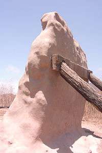 The enclosure was rectangular, with the church and the residential quarters facing east and south. It had an open patio, the only entrance to which was a large door located in the southeast corner of the complex, protected by a barrack. The complex also included an irrigation ditch, four granaries, two houses, a corral, and three other rooms.