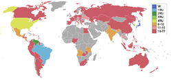 | Withdrawals | Cayman Islands, Chile, Ethiopia, Ghana, Iceland, Ireland, Latvia, Namibia, Northern Marianas, Sri Lanka, St. Martin, St. Vincent & the Grenadines, Sweden, Trinidad & Tobago, Turkey, United Kingdom |