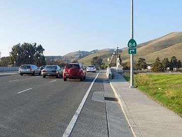 For several decades, SR 238 from Hayward to Fremont was also planned to be upgraded to a freeway, called the "Mission" or "Foothill" freeway.[2] It was submitted to the Interstate Highway System in October 1968 but was rejected.[5] Then after a series of lawsuits and appeals, Caltrans had to abandon the project in 2004 and sell off the property it had acquired in the name of eminent domain along the proposed route.[2]