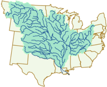 The Mississippi River Basin Healthy Watersheds Initiative (MRBI) was developed by the United States Department of Agriculture (USDA) Natural Resources Conservation Service (NRCS) in an attempt to improve the health of the Mississippi River Basin. The Initiative has selected watersheds to improve in 12 states including Arkansas, Kentucky, Illinois, Indiana, Iowa, Louisiana, Minnesota, Mississippi, Missouri, Ohio, Tennessee, and Wisconsin. South Dakota was added later. The MRBI built upon past efforts of producers, NRCS, partners, and State and federal agencies in this area. By dedicating $80 million per year from 2010 to 2013, the Initiative introduced local producers in the Mississippi River Watershed to conservation practices to control nutrient runoff from agricultural land.[6] These practices helped to reduce nutrient loadings downstream, improve water quality, and restore habitats while maintaining agricultural productivity. Each state selected three area watersheds that the MRBI focused on. The selection was based on the future growth of the site depending on current water quality data, existing strategies to reduce nutrient discharge, and existing models of nitrogen and phosphorus in the watershed. Special consideration were given to watersheds that had the largest impact on managing nutrients.[6]