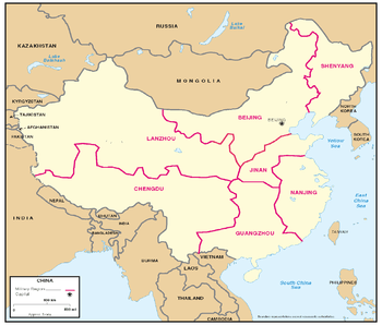 In 1985 China reorganized its 11 military regions into 7 and began a 2-year program to reduce the force by 1 million. Eight military regions were merged into four—Chengdu, Jinan, Lanzhou, and Nanjing—and three key regions—Beijing, Guangzhou, and Shenyang—remained intact. The PLA accomplished its 1-million-troop cut by streamlining the headquarters staffs of the three general departments, the military regions, and the military districts; reducing the size of the Air Force and the Navy; retiring older, undereducated, or incompetent officers; and transferring county- and city-level people's armed forces departments, which controlled the militia, to local civil authorities.
