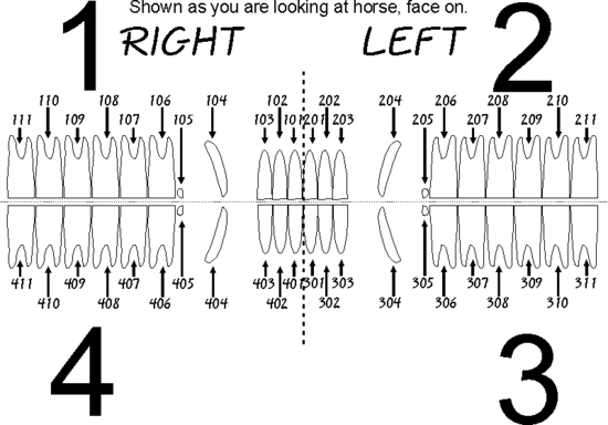 Below is a diagram of the modified triadan system in horses.