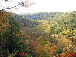 Mohican State Park is a 1,110-acre (4.5 km2) Ohio state park in Ashland County, Ohio, United States, about 5 miles (8.0 km) south of downtown Loudonville. The state park is surrounded by the 4,525-acre (18.31 km2) Mohican-Memorial State Forest. Mohican State Park is located along Ohio SR 3 and Ohio SR 97. The Clear Fork of the Mohican River flows through the park and joins the Black Fork about a half-mile east of the park to form the Mohican River. The park is open for year-round recreation including camping, hiking, boating, mountain biking, fishing, and picnicking.