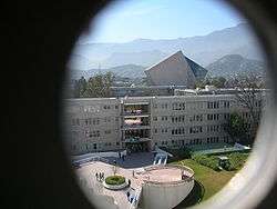In its early years the Institute operated at Abasolo 858 Oriente in a large, two-story house located a block and a half away from Zaragoza Square, behind the city's Metropolitan Cathedral.[13] As these facilities soon proved to be insufficient, it started renting out adjacent buildings and by 1945 it became apparent that a university campus was necessary. For that reason, a master plan was commissioned to Enrique de la Mora and on 3 February 1947 what would later be known as its Monterrey Campus was inaugurated by Mexican President Miguel Alemán Valdés.[1]