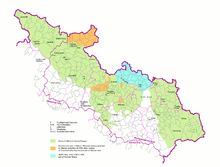 ![]() Czech Silesia (green) and the so-called Moravian enclaves in Silesia (red) in relation to the current regions of the Czech Republic | |||