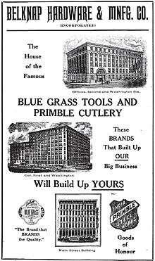 - ↑ Sturgeon, Bob. "Belknap Hardware & Mfg. Co. - Louisville, KY: Company History". W. K. Fine Tools magazine. Retrieved 7 February 2016.