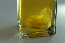 Mother of vinegar is a substance composed of a form of cellulose and acetic acid bacteria that develops on fermenting alcoholic liquids, which turns alcohol into acetic acid with the help of oxygen from the air. It is added to wine, cider, or other alcoholic liquids to produce vinegar.[1] Mother of vinegar is also known as Mycoderma aceti, a New Latin expression, from the Greek μὑκης (fungus) plus δἐρμα (skin), and the Latin aceti (of the acid).[2] The naming of the bacteria has been rather fluid due to its original identification near the inception of bacteriology. Currently, the preferred naming is Acetobacter aceti.[3]