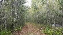 The Mount Tammany Fire Road was constructed as a dozer line created after the 1976 Dunnfield Creek fire on Kittatinny Mountain which consumed over 2,000 acres (8.1 km2) of forests from April 18 to April 22, 1976.[2] Today, the road is often used as part of a loop with the Appalachian Trail, Sunfish Pond Fire Road, Dunnfield Creek trail and other trails by hikers visiting the Delaware Water Gap.[3][4] The Mount Tammany Fire Road connects with the Blue Dot Trail, Red Dot Trail, Turquoise and Taylor Trails on Mount Tammany.[1]