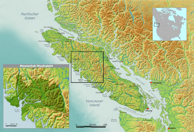 Their main reserve is at Gold River, British Columbia but the Mowachaht are originally from Yuquot on Nootka Sound, known to history as Friendly Cove, scene of the Nootka Incident and, later, the negotiations and eventual implementation of the Nootka Conventions between Britain and Spain, hosted by the Mowachaht chief Maquinna.