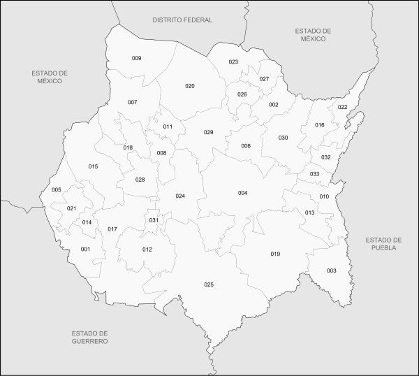The Mexican state of Morelos is subdivided into 33 municipalities (municipios):