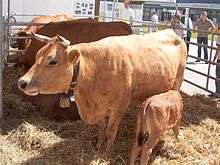 The animals are brown-yellow, but there are great colour variations from straw-yellow to reddish brown. Hooves and horn tips are black. There is a white rim around a dark muzzle. They are very long-lived and fertile. It is a German breed that is specially adapted to a husbandry in boggy landscapes. The breed originated in Tyrol, Austria and is closely related to Brown Swiss, Braunvieh and Tyrolese Grey Cattle. Nowadays the main breeding region is around Garmisch-Partenkirchen and Murnau that is also called "Werdenfels Country". The breed is in danger of extinction, with only around 130 females in the herdbook and frozen semen from around eleven males.[1] the breed was voted Endangered Breed of the Year 2007 by the German Society for the Conservation of Old and Endangered Livestock Breeds.[2] The Federal State of Bavaria maintains a suckler herd of cows and a sperm bank. It gives financial support to breeders. The breed is part of the Ark of Taste of the Slow Food Foundation for Biodiversity, dedicated to the preserving of endangered agricultural heritage.[3]